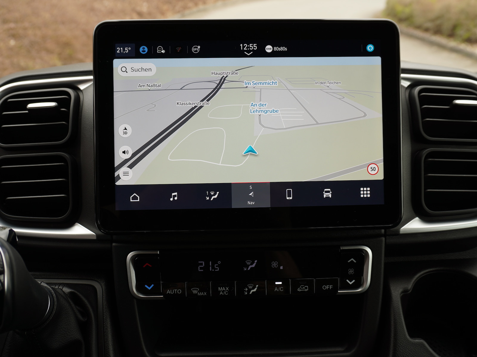 - aktiver Spurhalteassistent: In Zusammenarbeit mit anderen Assistenzsystemen bietet der Spurhalteassistent eine ausgereifte Fahrspurzentrierung, indem er die Fahrbahnmarkierungen und -ränder erkennt und bei Bedarf selbsttätig gegenlenkt.