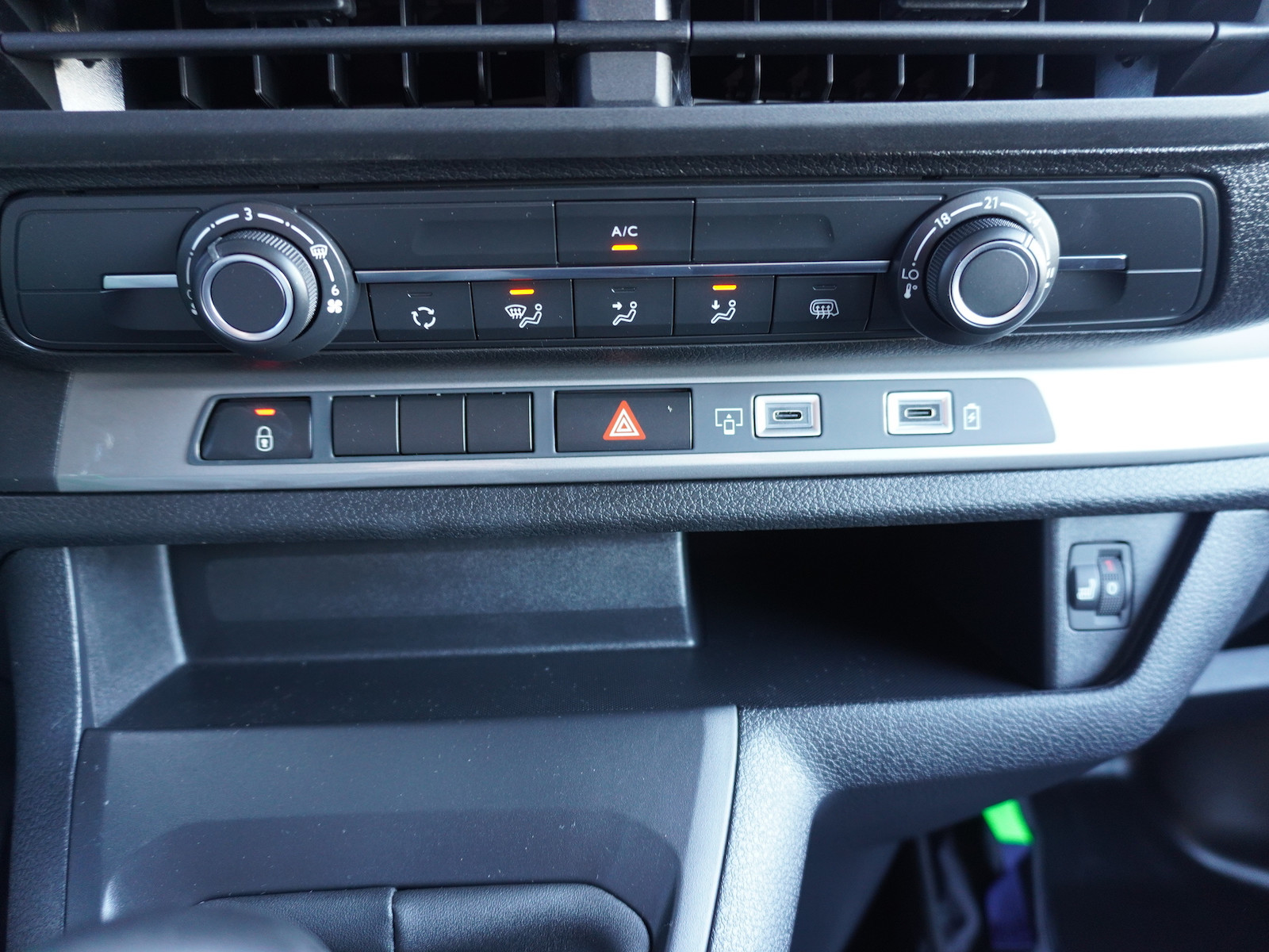 Entsprechend der Größe Ihres Teams haben Sie die Wahl zwischen zwei komfortablen Einzelsitzen, drei oder sechs Sitzplätzen (die 2. Sitzreihe ist im Multicab serienmäßig). Die Doppelsitzbank für die Beifahrer (Kastenwagen) hat unter dem mittleren Sitz ein Staufach, in dem beispielsweise Büroutensilien Platz finden. Die Rückenlehne des mittleren Sitzes beinhaltet einen herausklappbaren Tisch. Zusammen mit dem Infotainment-System (Sonderausstattung), welches über ein 7-Zoll-Farbdisplay mit Touchscreen verfügt, und Ihrem Smartphone verwandeln Sie den Transporter im Handumdrehen in ein kleines Büromobil. Selbstverständlich verfügt das Infotainment-System auch über ein Navigationssystem, das Ihre Mitarbeiter auf dem schnellsten Weg ans Ziel bringt und zusätzlich noch mit wichtigen Informationen wie nahegelegene Tankstellen oder Parkplätze oder auch der Wettervorhersage versorgt. Die serienmäßige Klimaanlage (gegen Aufpreis auch als Klimaautomatik erhältlich) sorgt nicht nur für mehr Fahrkomfort, sondern auch für mehr Sicherheit, denn bei Temperaturen über 25 °C lassen Konzentration und Reaktionsgeschwindigkeit nach.