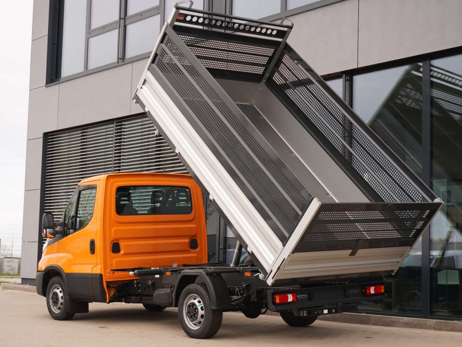 - Aufbauten: Iveco Daily als Kastenwagen, Pritsche, Kipper oder Koffer, wahlweise mit Doppelkabine